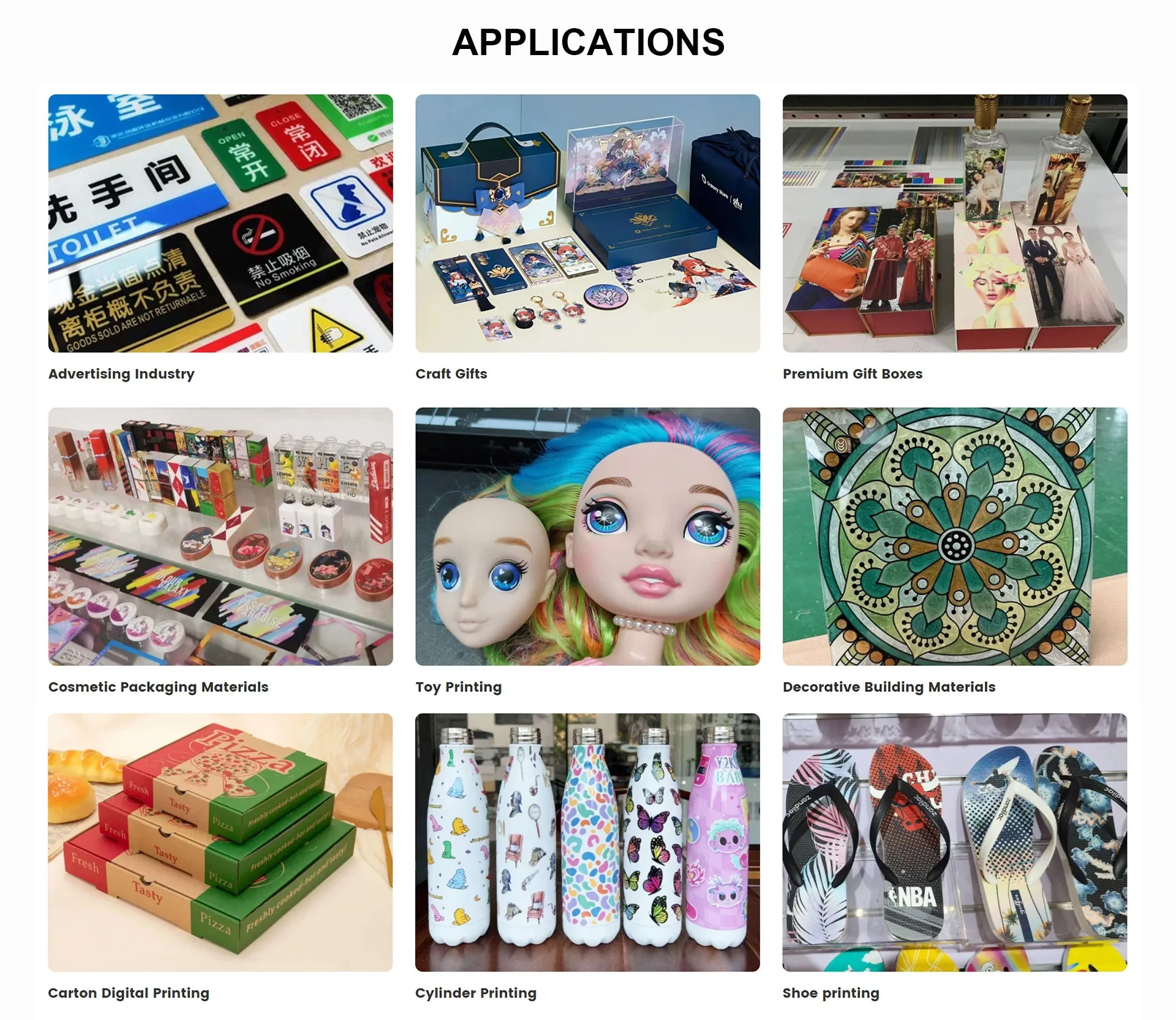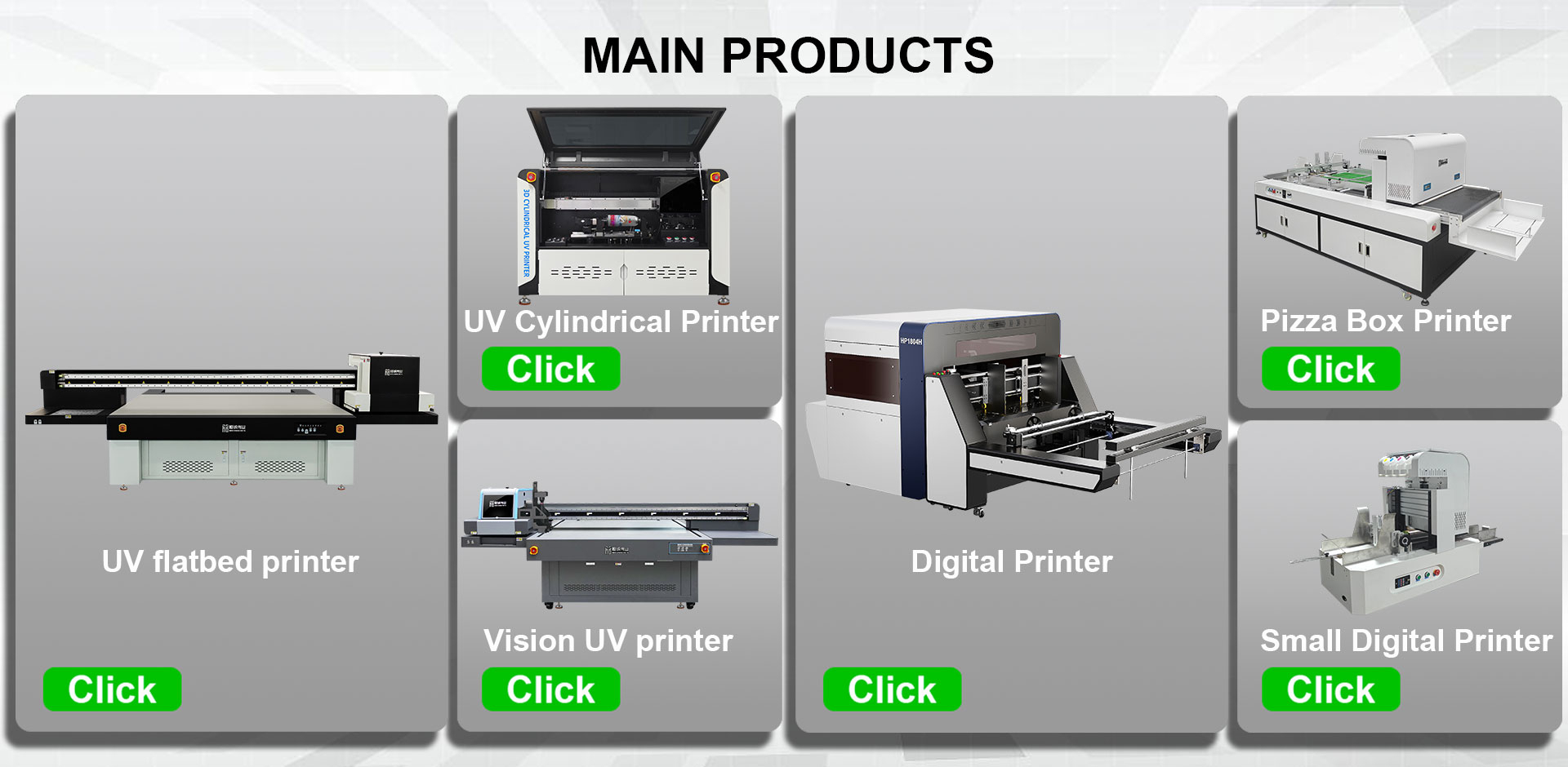 It is one of the first manufacturers in China to develop, produce and sell UV printers. Since its establishment, the company has been professionally committed to innovative research and development of inkjet printing equipment, and has always adhered to the "integrity, innovation, Communication" for the corporate purpose, the team spirit of "technology and service" is the foundation of the business, and has formed a complete one-stop service system for UV printing equipment research and development, production, installation and debugging, training, and after-sales maintenance.